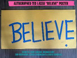 Bid for a chance to win a Ted Lasso Believe Banner signed by Jason Sudeikis, Brendan Hunt, Sam Richardson, Hannah Waddingham and Cristo Fernandez.