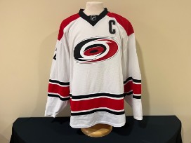 Retired Carolina Hurricane, Eric Staal #12 game worn jersey 2014-15 1st set. Jersey to be signed at a later date.