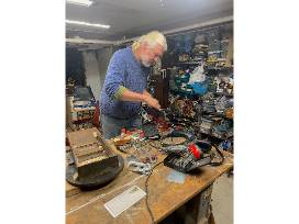 As a sculpture student it was a natural thing to scour salvage yards and rubbish piles for art supplies instead of buying new. This attitude of reuse and adapting existing parts still plays a major role in his clocks today.