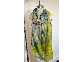 Rooted in intergenerational trauma and healing, Sarah Tremain reimagines pain into purpose. Each design uses Tremain Smith's encaustic paintings as its foundation, transforming them into prints that become functional, beautiful garments. These creations honor the legacy of their shared relationship, blending artistry with resilience to inspire connection and individuality.