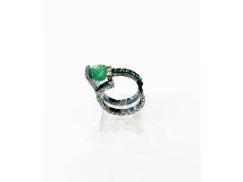 Sm size tension set ring, emerald center and melee stones