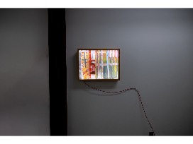 Illuminated Art Panel, red oak frame, glass, duratran print, leds