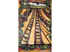 I have worked this train yard series for many years. From under the large pecan tree in front of my parent's house in Texas, I watched the trains pass by with various views of the train and its tracks. Combining home with my personal landscape has become one and the same.