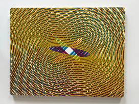 Woodcut monoprint mounted on archival birch panel. The intersecting spirals in the image were generated using a pendulum drawing tool. The analog sharpie drawings were digitized and then CNC(computer numerical control) milled into woodblocks. The plates were used to make the impression using traditional relief printing techniques.