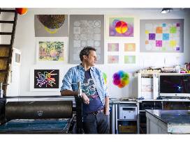 Alexis Nutini (b. Mexico City, Mexico; l. Philadelphia, PA) received a BA in fine art from St. Mary's College of Maryland, St. Mary's City and an MFA in printmaking from the Tyler School of Art & Architecture, Temple University, Philadelphia. Nutini runs Dos Tres Press, where he publishes his own prints and develops collaborative projects with other artists. The focus of Dos Tres Press is experimentation with relief techniques through hand-carved, reduction woodblock printing combined with the digital technology of a CNC router. Nutini was the recipient of a Fulbright Fellowship in Barcelona, Spain and has exhibited his work at venues in Los Angeles, CA; Manhattan, KS; Nashville, TN; Philadelphia and Pittsburgh, both PA; Seattle, WA; and St. Mary's City; as well as in Barcelona, Spain; Brisbane and Melbourne, both Australia; Rome, Italy; and Veracruz, Mexico.