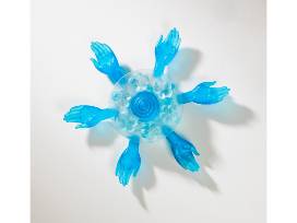 My glasswork is comprised of one-of-a-kind sculptural vessels, flacons, goblets and other decorative objects. With technical inspiration taken from the late 19th C. French glass-casting technique known as pate de verre, a process that has its roots in antiquity and is defined by the heat fusing of small glass particles in molds, my objects are playful assemblages of colorful elements kiln-cast from lead crystal via the lost-wax casting process, that are then ground, hand-polished and combined. Conceptually and visually, my works elicit a sense of history and ritual. Their prompts derive from ancient cultures and nature. The forms interpret symbols from various sources and are imbued with a sense of preciousness and the intangibility, yet familiarity that is associated with collaged memory. Prominently featured is the hand motif as it represents a ubiquitous cross-cultural human tool of communication through its emblematic gestures of friendship, generosity, holding, letting go, etc.