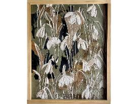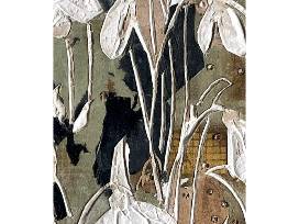 Collage, carved drywall, spray paint