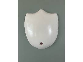 A shield is the membrane between interior and exterior. The current body of work, Shields, juxtaposes two basic ideas that are at odds with one another. Shields are an extension and surrogate of the body, a type of body armor or exoskeleton that offer protection during conflict, but behind them is a vulnerable and sentient body.