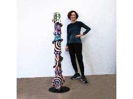 My abstract clay wallscapes with mirrors move, twist, roll and flow in space. The mirrors and textured white and gold glazes create light and reflection.