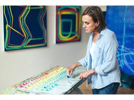 Paula Cahill is a contemporary American artist. She is known for her paintings made with color changing lines that are reminiscent of the bioluminescent light that emanates from sea-life at deep, dark depths.
