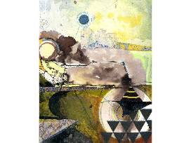 The roots of my art lie in the process of collecting images, ephemera, and found objects, which I layer, alter, or arrange to create something complex and symbolic. I work both digitally (photo-collage and graphic design) and in more traditional forms (mixed-media collage/painting and jewelry made from found and vintage objects). In 2019 I began to learn the craft of wheel-thrown ceramics, which I alter through decoupage and the traditional Japanese art of kintsugi (repairing broken items with gold and lacquer). For me, this process of creation, destruction, and repair mirrors the ups and downs of life and treats the inevitabilities of damage and healing as something beautiful to be celebrated.