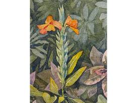 This watercolor is a reimagining of the native plants and cultivated gardens around Lake Atitlan in Guatemala. Drawing from both photos and memory, the painting joins a series of botanical works that play with scale and hint at pattern.