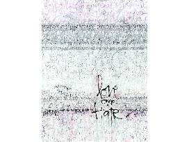 In this painting, I'm combining my interest in mark-making and calligraphy with intuitive abstract painting. The repeated message of "love over hate, heart over mind, faith over fear, peace over war" seems especially needed in these tumultuous times.