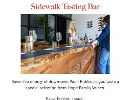 A wine steward will guide 4 GUESTS through a wine flight at Hope on Park ($150 value), where nearly 50 years of heritage, hospitality and winemaking find a whole new flavor in downtown Paso Robles.
