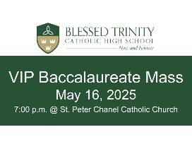 VIP Treatment for Blessed Trinity's 2025 Baccalaureate Service at St. Peter Chanel Catholic Church. Package includes one (1) reserved parking space at the church and one (1) reserved pew which seats 8.