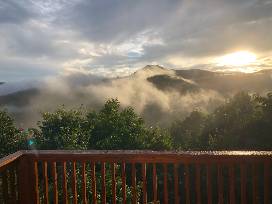 Enjoy 4 nights in the seclusion of our cabin "Above the Clouds" overlooking the beautiful Hiawassee River Valley. Located about 18 miles north of Helen, Georgia, and 2 miles south of Hiawassee. The cabin features: