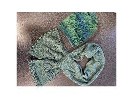 Hand Knitted Forest Green Beanie and Looped Bauble Scarf