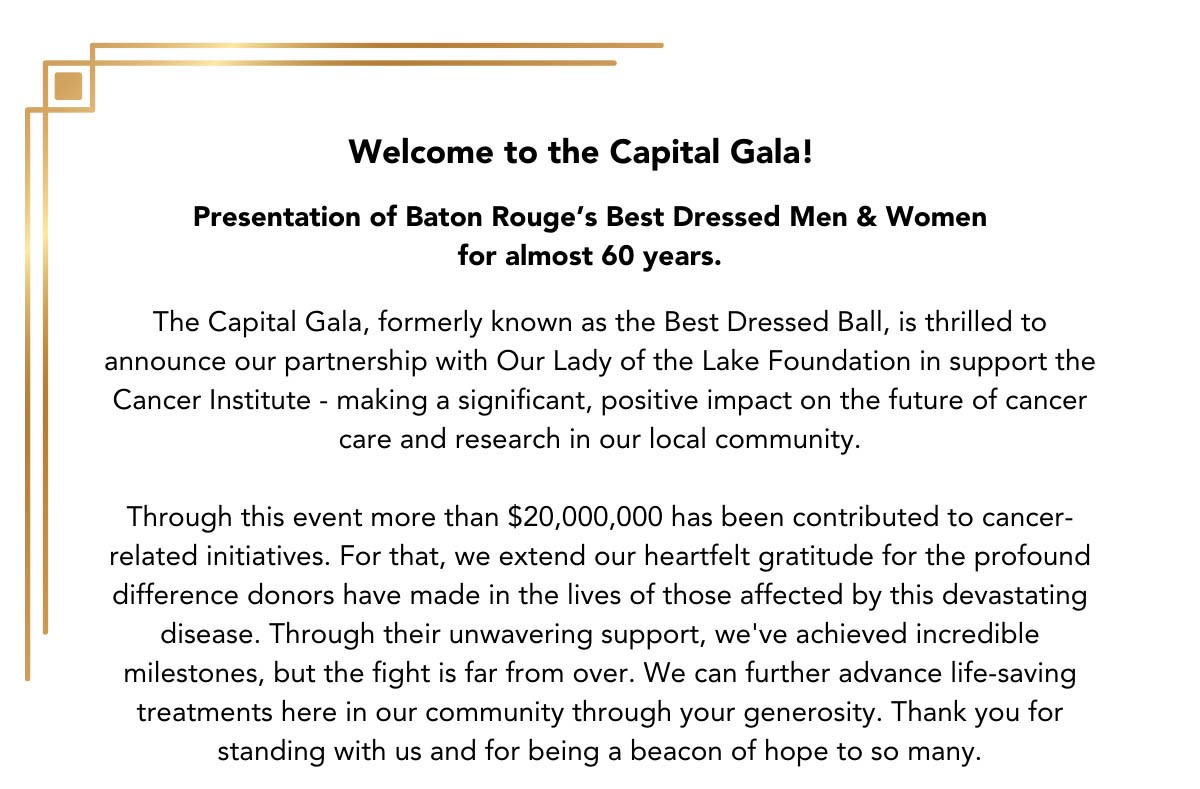 An elegant and formal affair, The Capital Gala will feature guest appearances, dinner and dancing with live entertainment.