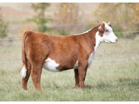 My long time friend over there at Stenberg Herefords bought a cow from Buck a few years ago and she didn't show up often at the shows but when she did it just wasn't good for those other participants as she dominated the northern plains. Lot 3 is worthy of the most competitive homes who have the highest expectations when they load the trailer. Not just a pretty picture-she's wide too. Very lean and I can't wait to see what she looks like in 60 days.