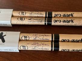 Two signed pairs of Todd Sucherman's Signature Promark Drumsticks. There is one fresh, unused pair and one pair that was used at a Styx show.