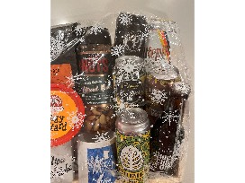 4 bags of locally roasted coffee beans, a sampling of beer from different Minnesota breweries, locally made snacks, and two fun Minnesota mugs.