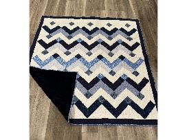 Tones of blue fabric make up this handmade quilt. The back is a very soft, cuddly, minky fabric that is wonderful to snuggle in on these cold winter days. Quilt is 67"x70". Perfect for lying on the sofa or at the end of your bed.