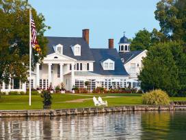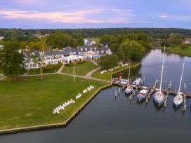 Escape to this five-star seaside retreat, located in the Victorian town of St. Michaels, off Maryland's eastern shore. Inn at Perry Cabin is a boutique luxury waterfront resort with upscale class and historic colonial charm beside the Miles River. Surrounded by lush, manicured greenery and tranquil waters, this secluded 26-acre haven makes for an ideal getaway. Swim in the expansive infinity pool, relax at the Spa at Perry Cabin, savor the fresh catch of the day from award-winning restaurants, play a championship golf course, and sail the blue waters with a fleet of seven motoring and sailing vessels.