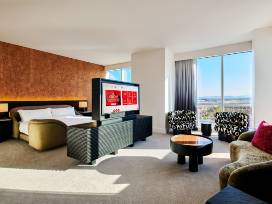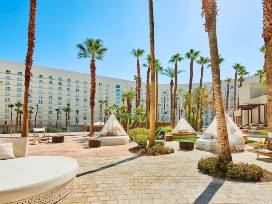 But the real rhapsody at Virgin Hotels Las Vegas plays out beyond your suite. The culinary haunts promise gastronomic adventures that dance on the palate, while the signature bars stir up nights you'll recount in hushed whispers. Immerse yourself in the pulsating rhythms at the music venue or take a soulful dip in the oasis-like pool, a liquid escape in the heart of the desert.