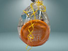 Treat yourself to a taste of the tropics with this fun-filled gift basket! Enjoy free smoothies for a year from Tropical Smoothie Cafe in Moon Township. Snack on two cookies and three bags of Miss Vickie's Chips, sip in style with four edible straws, and keep cool with a Tropical Smoothie Cafe ice pack. Plus, enjoy beachside fun with a frisbee and sand bucket and jot down your thoughts with a logo pen.