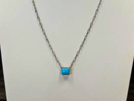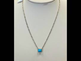 This sterling silver necklace features a bold turquoise pendant on a stylish paperclip chain. The bright blue contrasts beautifully with the silver chain, perfect for any occasion.
