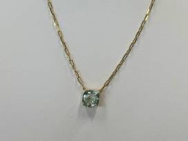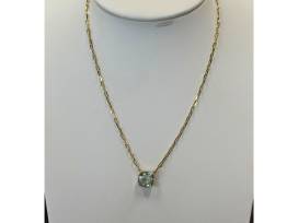 1This 18kt yellow gold necklace features a 5.53ct green amethyst pendant on a stylish paperclip chain. The soft green gemstone contrasts beautifully with the warm gold, perfect for any occasion.