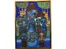 1UN SUEÑO EN AZUL / A dream in blue by internationally acclaimed artist Víctor Mora is a Cuban Postwar & Contemporary painter. This acrylic on canvas framed piece with no glass measures 31 3/8" X 42 1/8"