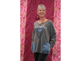 Don't just sport a Thistle Farms sweatshirt, SHINE in this one-of-a-kind designer sweatshirt hand adorned by St. A's own Dawn De Santo.