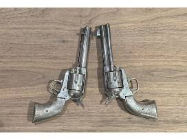 Matching set of nickel plated Colt 45s with turquoise and silver grips, manufactured in 1928.