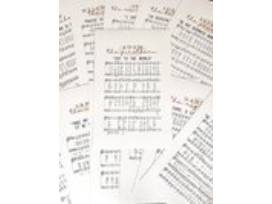 Posters include these hymns: Joy to the World, All My Hope on God Is Founded, "Praise Him, Praise Him!", I Surrender All, In Heavenly Love Abiding, Guide Me O Thou Great Jehovah, Take My Life and Let It Be Consecrated, The Lord's My Shepherd, "Prince of Peace, Control My Will", Be Not Dismayed Whater'er Betide, "O Come, O Come Emmanuel", He Is Able To Deliver Thee.
