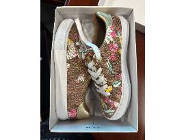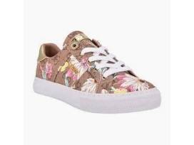 Guess Loven 3 Floral Brown Sneaker. Size 7.5. Absolutely stunning shoe! So much detailing with the floral print, gold and crystal detailing. Such a fun shoe and could be worn every season!
