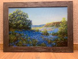 Oil painting giclee print by Mary Zirkel in an Aged Pine frame and includes the Certificate of Authenticity.