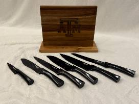 Calling all A&M fans! Liven up your kitchen with this engraved knife block and knives. No worries if your team loses, you can just turn the block around and there you will find the SS logo which is better than any sports logo!