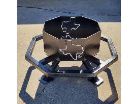 This is a custom made fire pit! Enjoy a few cool spring nights with the family hanging out by the fire and maybe work on your marshmallow roasting skills. Dimensions: Entire piece: 21" tall x 40" across; Fire pit area: 24" across.