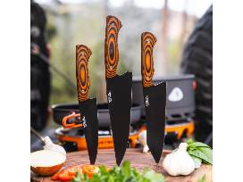 The MKC Culinary Collection features three knives from the collaboration between Josh Smith and renowned knife maker Mareko Maumasi. The knives are made with Magnacut Stainless Steel and finished with a black Cerakote coating for optimal durability. The handles are constructed of G-10 and contoured for a comfortable grip. Made right here in Frenchtown, Montana.