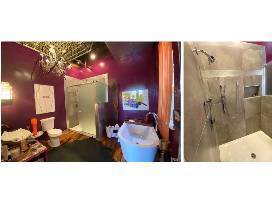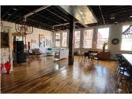 If you have ever wondered what loft living in a real warehouse would be like, this is the space for you! Original hardwood floors and brick walls make the perfect backdrop for a recycled and reused aesthetic. That topped with the owner's creative vision to custom make the chandelier, the coffee table, and the unique sink and tub interpretation is a must see to believe.