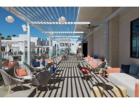 Perched in the heart of downtown, Thompson Palm Springs brings a fresh spin to its rich cultural heritage, boasting an iconic midcentury modern design that embodies the Rat Pack-era style the neighborhood is famous for. This chic urban oasis offers unique rooms, two-bedroom suites with expansive balconies or patios and unrivaled luxury hotel and resort amenities-available to locals and visitors alike-including a new signature restaurant with Middle East cuisine helmed by an award-winning chef, two outdoor pool venues with immersive views, plus state-of-the-art fitness, an on-site HALL Napa Valley Tasting Room and over 35,000 square feet of dynamic retail and restaurant space.
