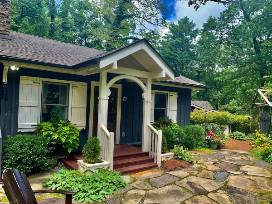 At 4000+ feet & only a 10 min walk to town on the Rhododendron Trail. Totally renovated 2017!! Light & sunny 3 bed/2 bath, 750 sq. ft. Originally built in the 1940's. Floor-to-ceiling shiplap, 17 ft. ceilings, hardwoods, reclaimed barn wood, custom fixtures, heated marble/slate bath floors, tankless water heater, gas fireplace, porch, Wifi, TV, washer/dryer, kitchenette. Beautiful gardens! Classic Highlands charm with modern comforts!
