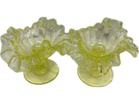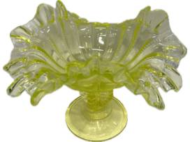 Vintage Northwood Opalescent Vaseline Glass, Beaded and Ruffled Uranium Glass