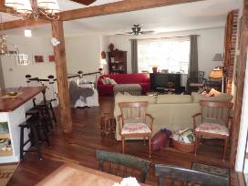 The large living room with a smart TV and DVD player also has a fireplace and a wooded view from the large bay window. The newly refurbished master bedroom with queen size bed has its own new fully renovated full bath. The 2nd & 3rd bedrooms each have (2) twin beds and share another brand-new full bath. The 4th bedroom with 1 queen and 1 double bed and has its own 1/2 bath.