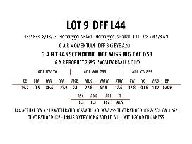 L44 ACTUAL BW 72 LB WITH RATIO 103 WITH ADJ WW 755 THAT RATIOED 102 & ADJ YW 1267 THAT RATIOED 107 - L44 IS A VERY LONG BODIED BULL WITH GOOD THICKNESS