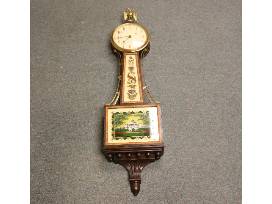 Exceptional "Waltham" Mahogany Banjo Clock; weight driven; Clock has ReversePaintings on Glass of "The Boston State House" and has the original brass Eaglefinial; 40"H; 10"W; 3-3/4" D;