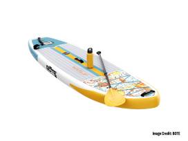 A stable platform with added benefits like MAGNEPOD tech to keep your drink handy, the BOTE WULF Aero 10 ft. 4 in. inflatable paddle board is great for beginners looking to get out on the water. Includes: (1) paddle, 10 in. removable Aero center fin, (1) Aero repair kit, (1) hand pump, (1) travel bag, and (1) coiled leash.