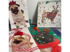 Lot of 10 previously loved holiday gift bags. Recycle the pug love this holiday while supporting rescue!