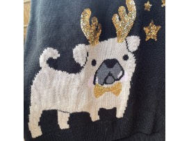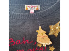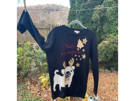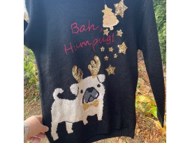 size large 100% acrylic sweater adorned with the classic Bah Humpug. Sequined accents will have you dazzling at the office party!